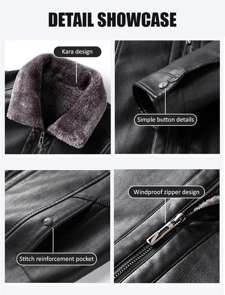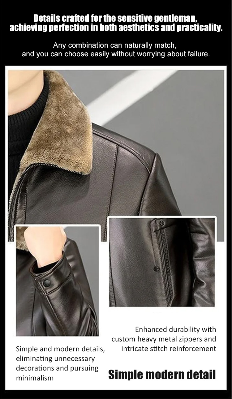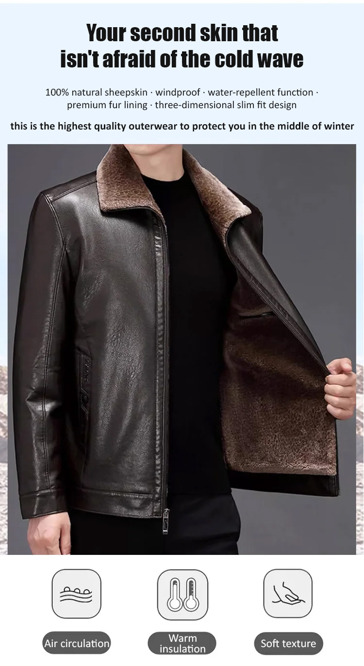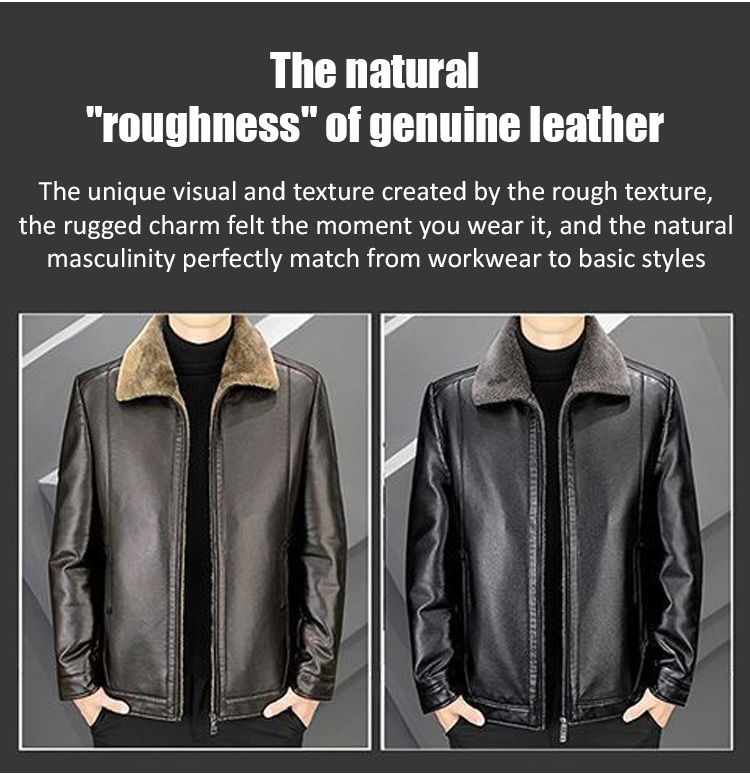 Premium Australian Merino Lamb Fleece ❤️ Men's Leather Jacket with Fleece Lining & Extra Thickness