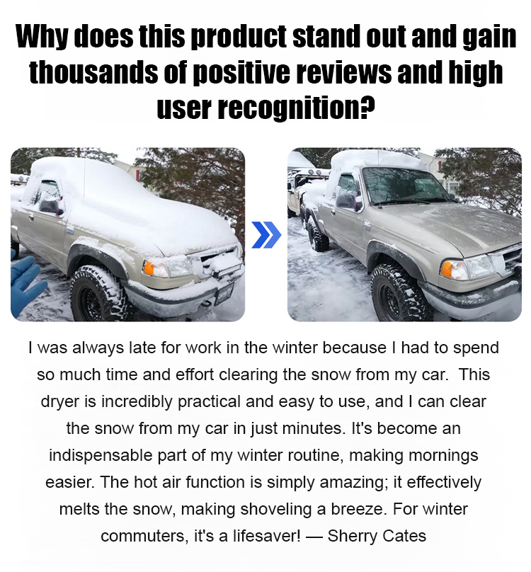 Blasts away snow & ice in under 10 seconds with powerful hot airflow — 100% safe for all vehicles.