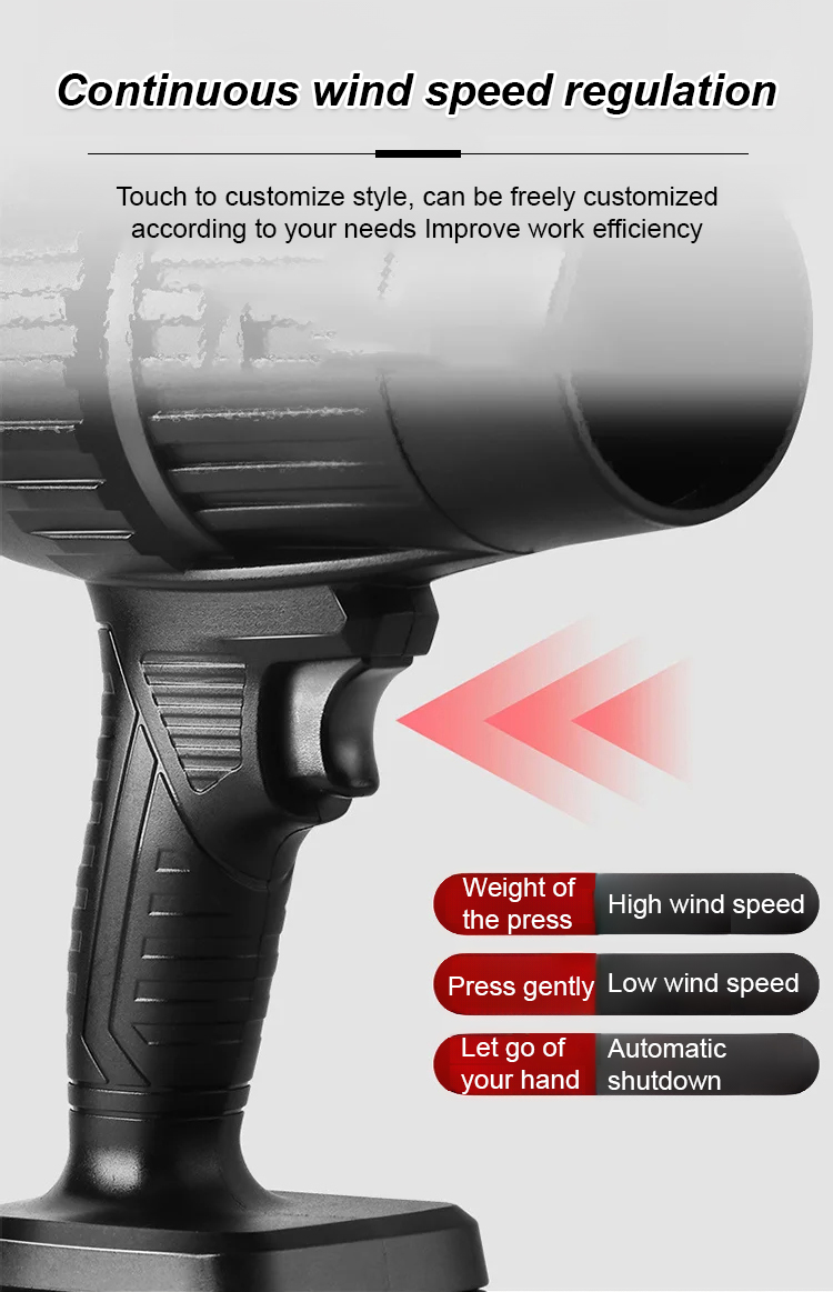 Dual-turbocharged lithium battery blower, with 3 adjustable wind speeds for convenient portability!